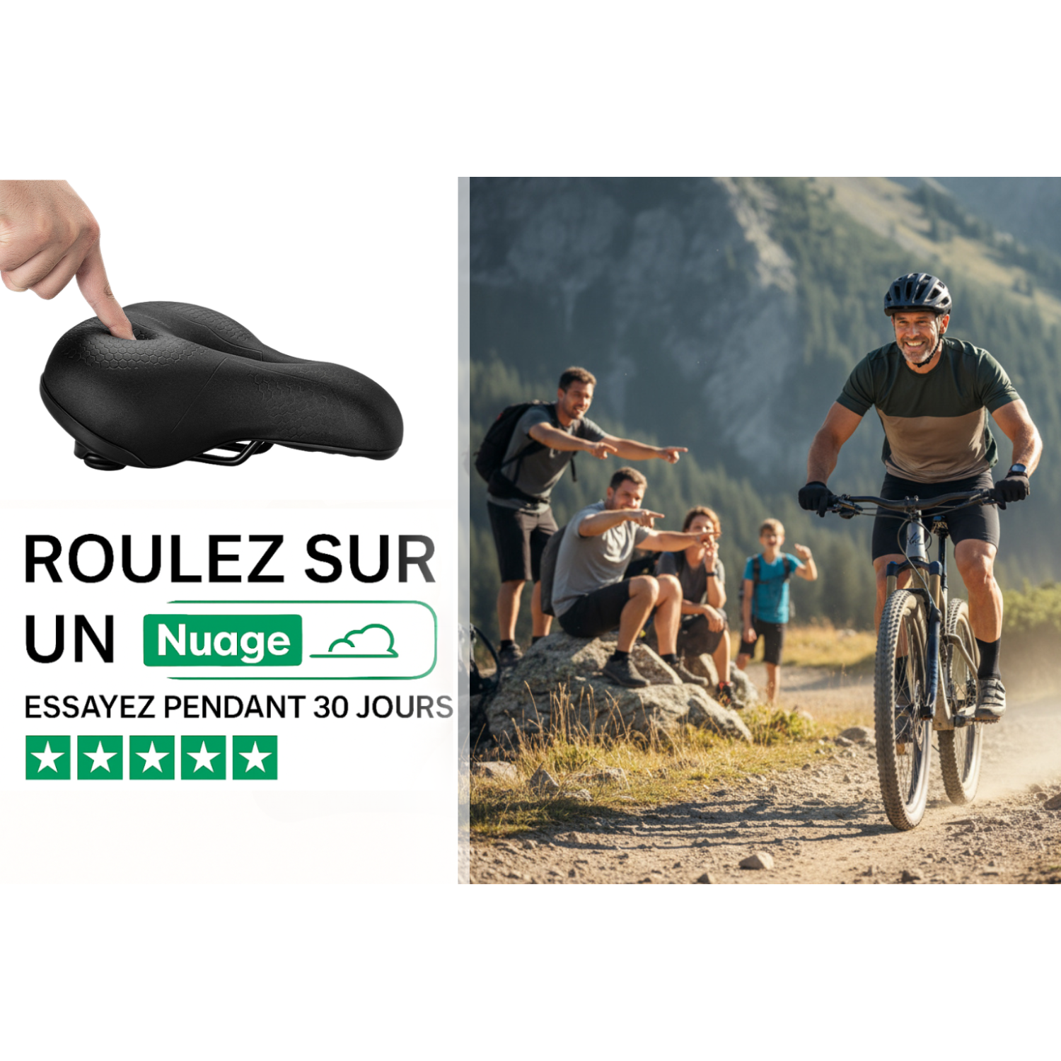 Testez la selle SelleNuage®, spécialement conçue pour le confort des hommes, sans aucun risque grâce à notre garantie satisfaite ou remboursée pendant 30 jours.