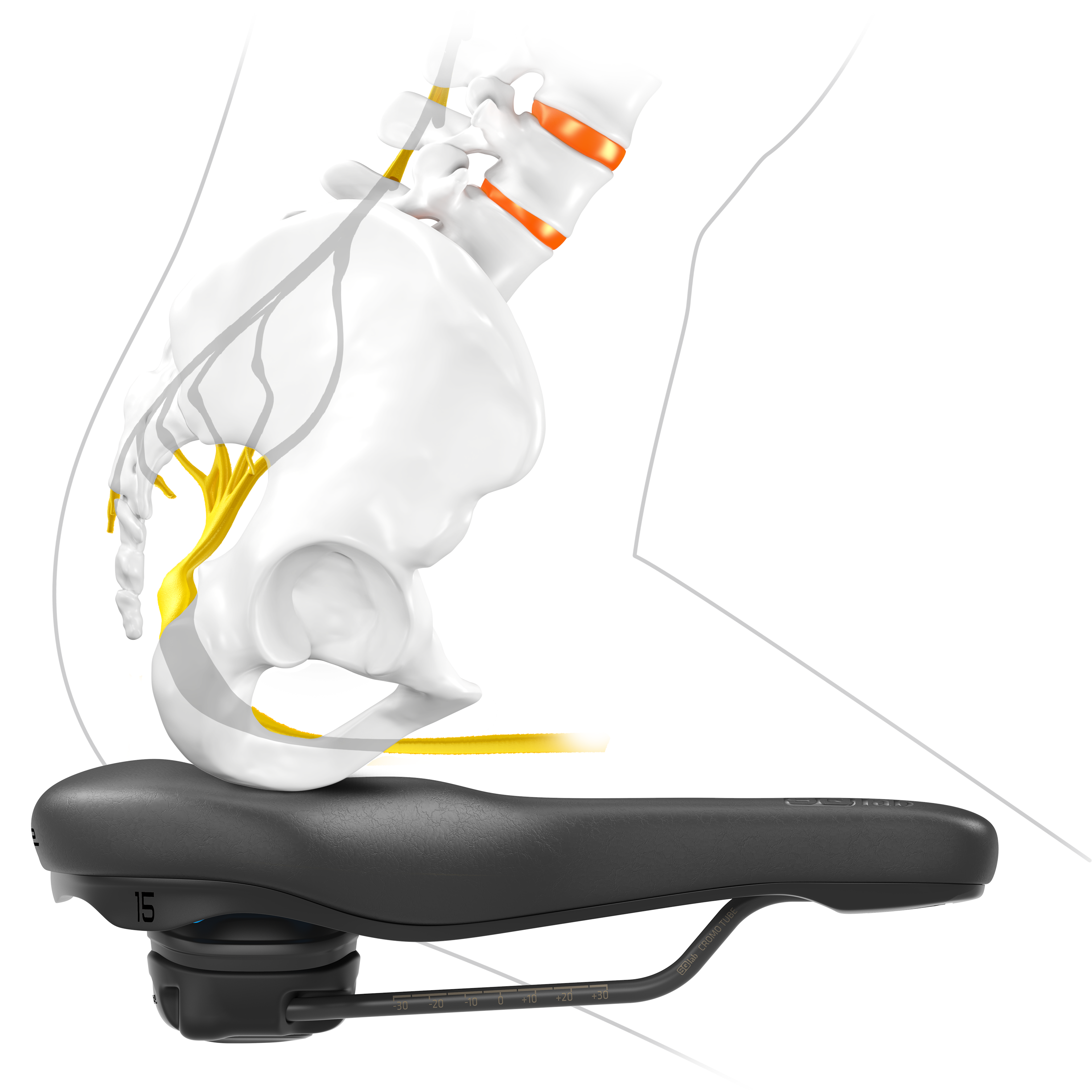 Lorsqu’un homme s’assoit sur une selle classique trop étroite ou mal conçue, une forte pression s’exerce sur la zone périnéale - c’est-à-dire entre les testicules et l’anus.