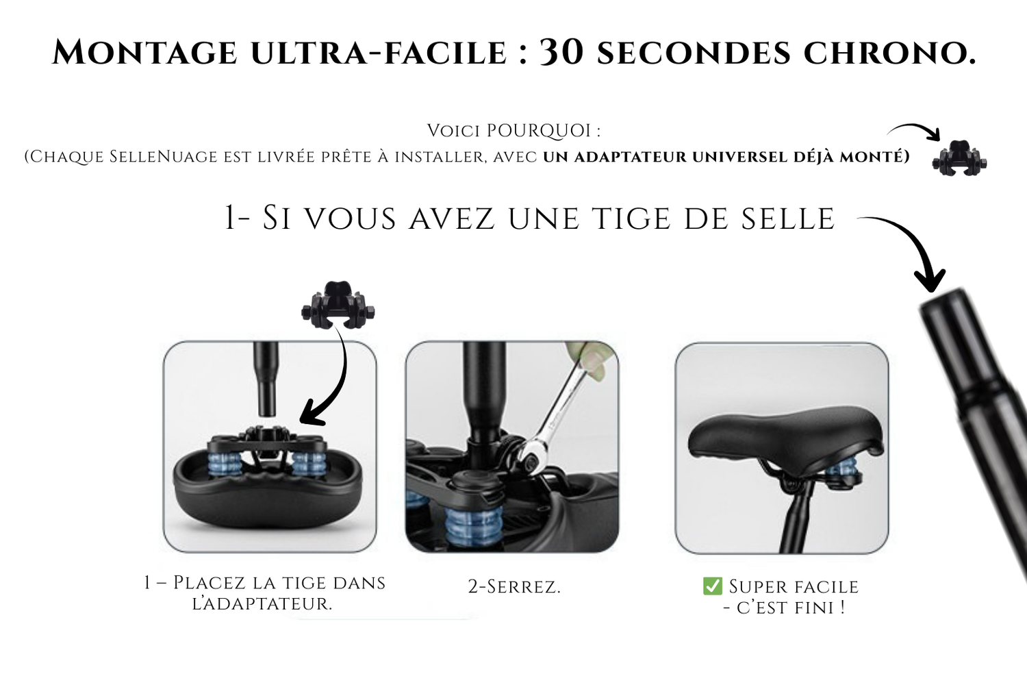 Oui, l’installation est ultra simple, même si vous n’avez jamais monté de selle auparavant.